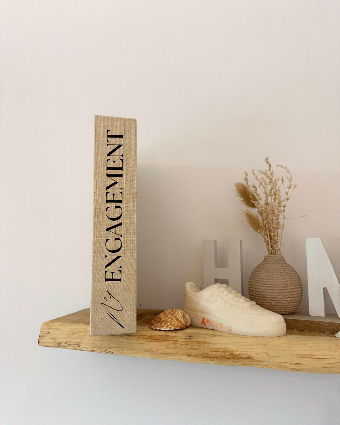 Conservez les plus beaux instants de votre séance d’engagement avec notre album photo effet lin personnalisé.