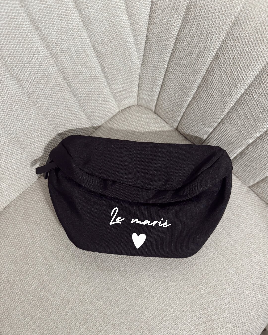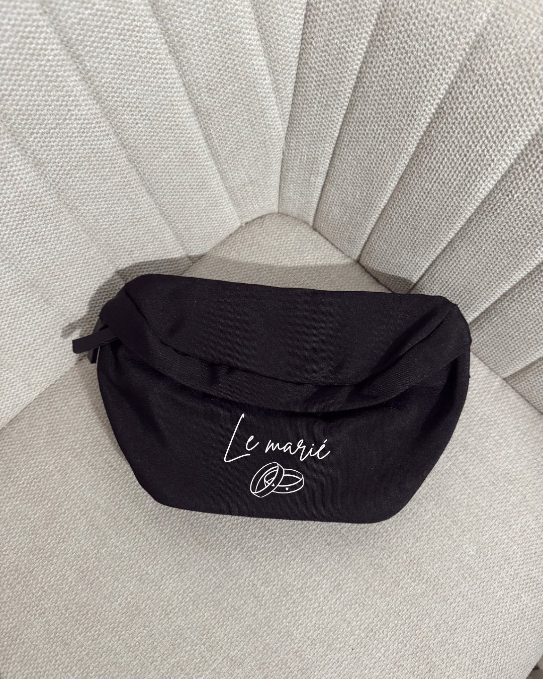 Parce que lui aussi mérite son accessoire tendance, découvrez notre banane personnalisée « Le marié ». Déclinée en trois coloris (crème, noir, camel) et personnalisable avec 3 typographies, elle accompagne le marié lors de ses préparatifs, de l’EVG ou même après le mariage.