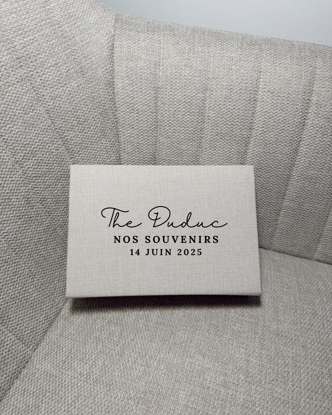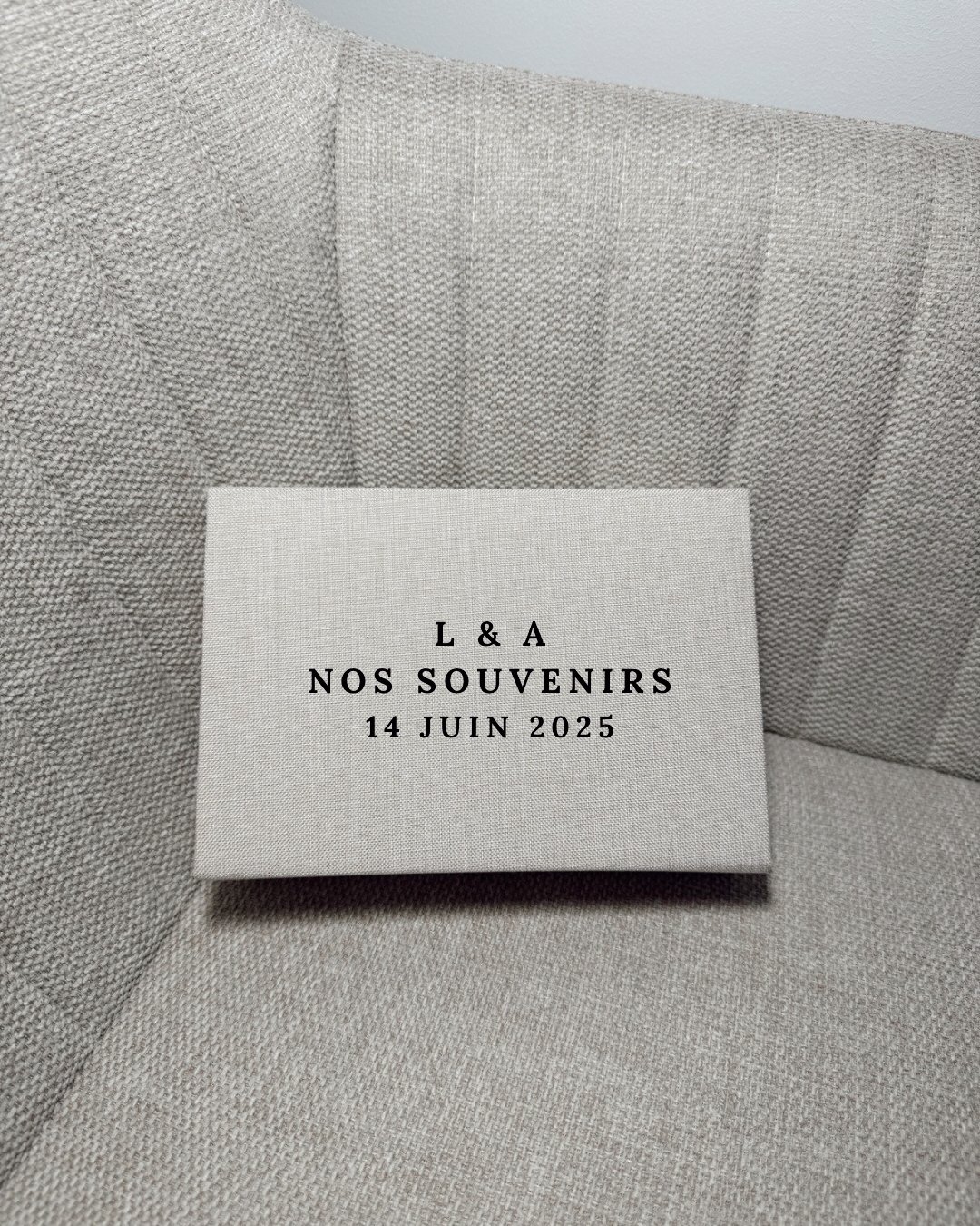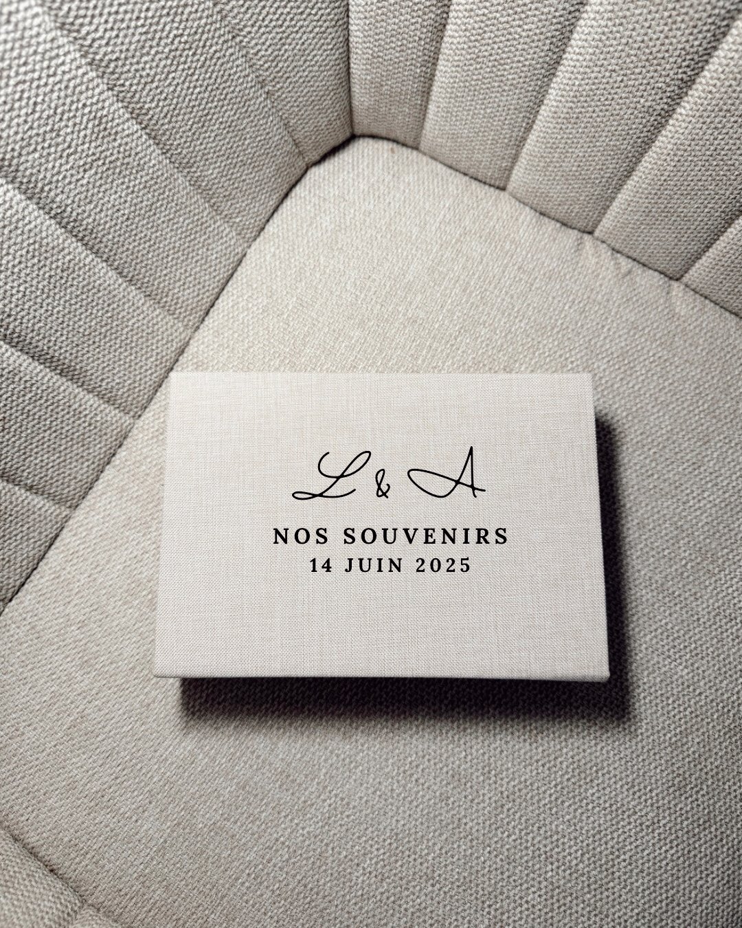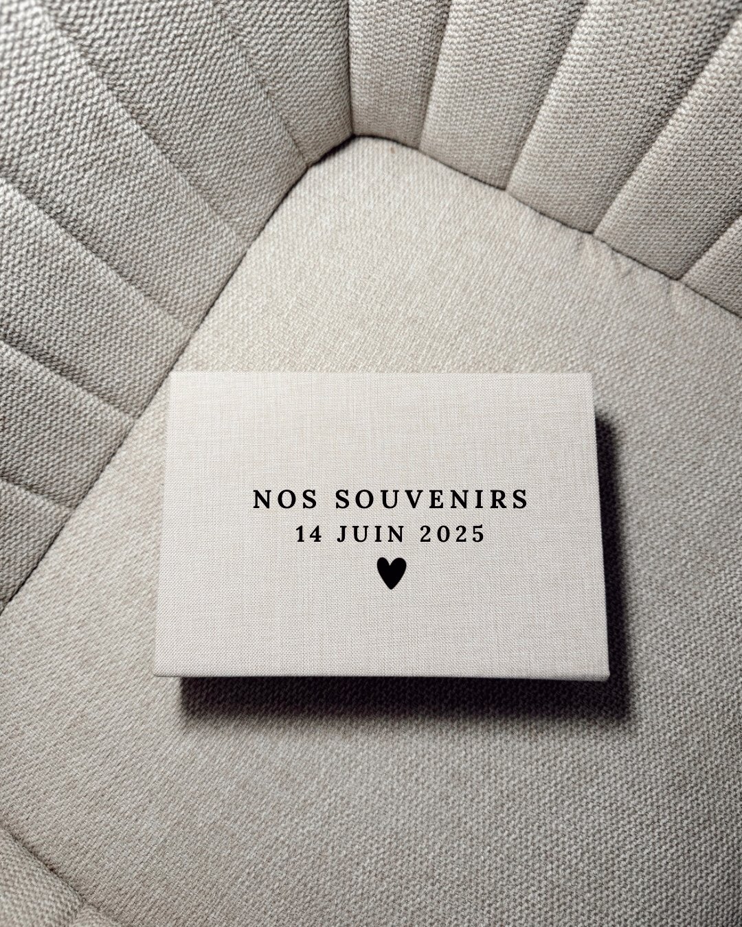 - Personnalisation : “Nos souvenirs” + prénoms + date du mariage