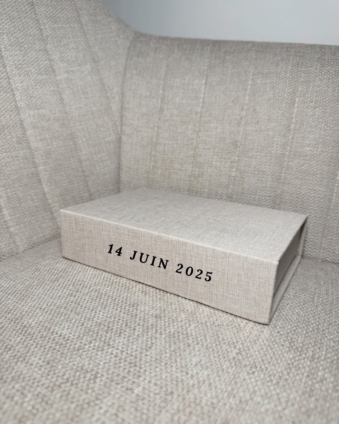 Conservez vos plus beaux clichés dans notre boîte photo effet lin personnalisée, au format 10 x 15 cm.