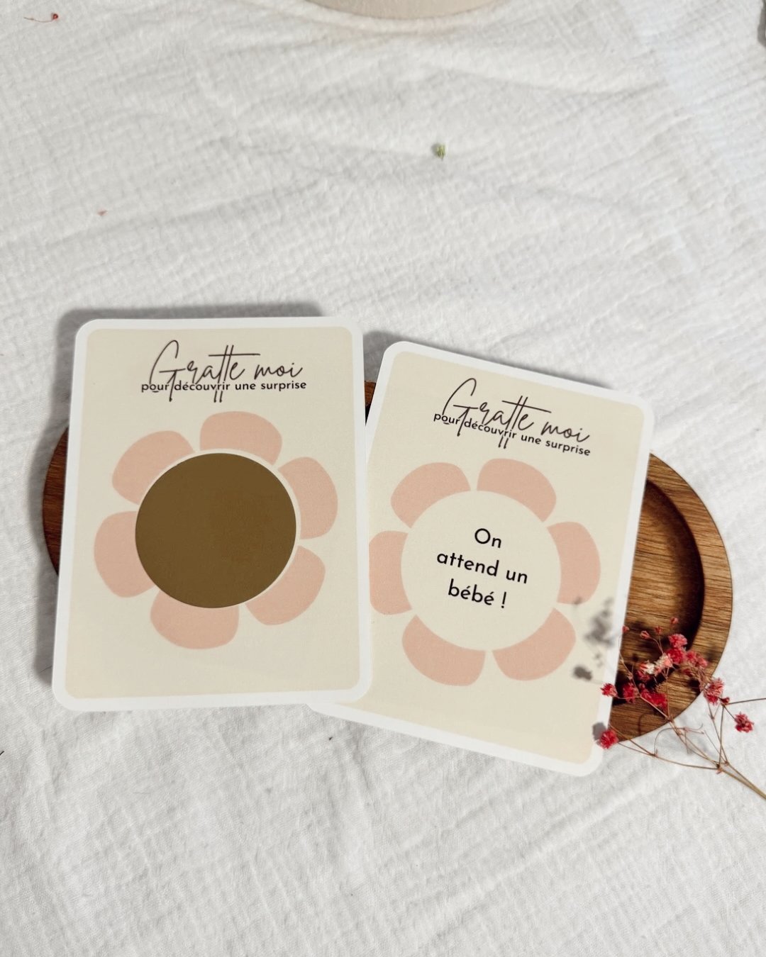 Sous la zone à gratter se cache un message tendre et symbolique, révélant avec émotion la grande nouvelle de votre union.