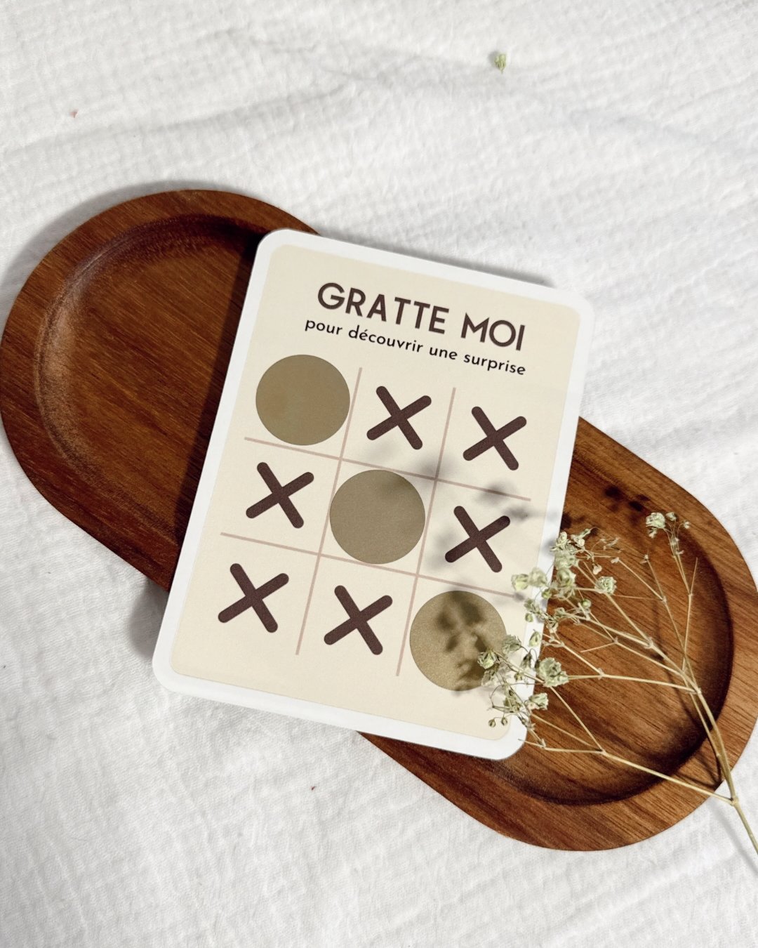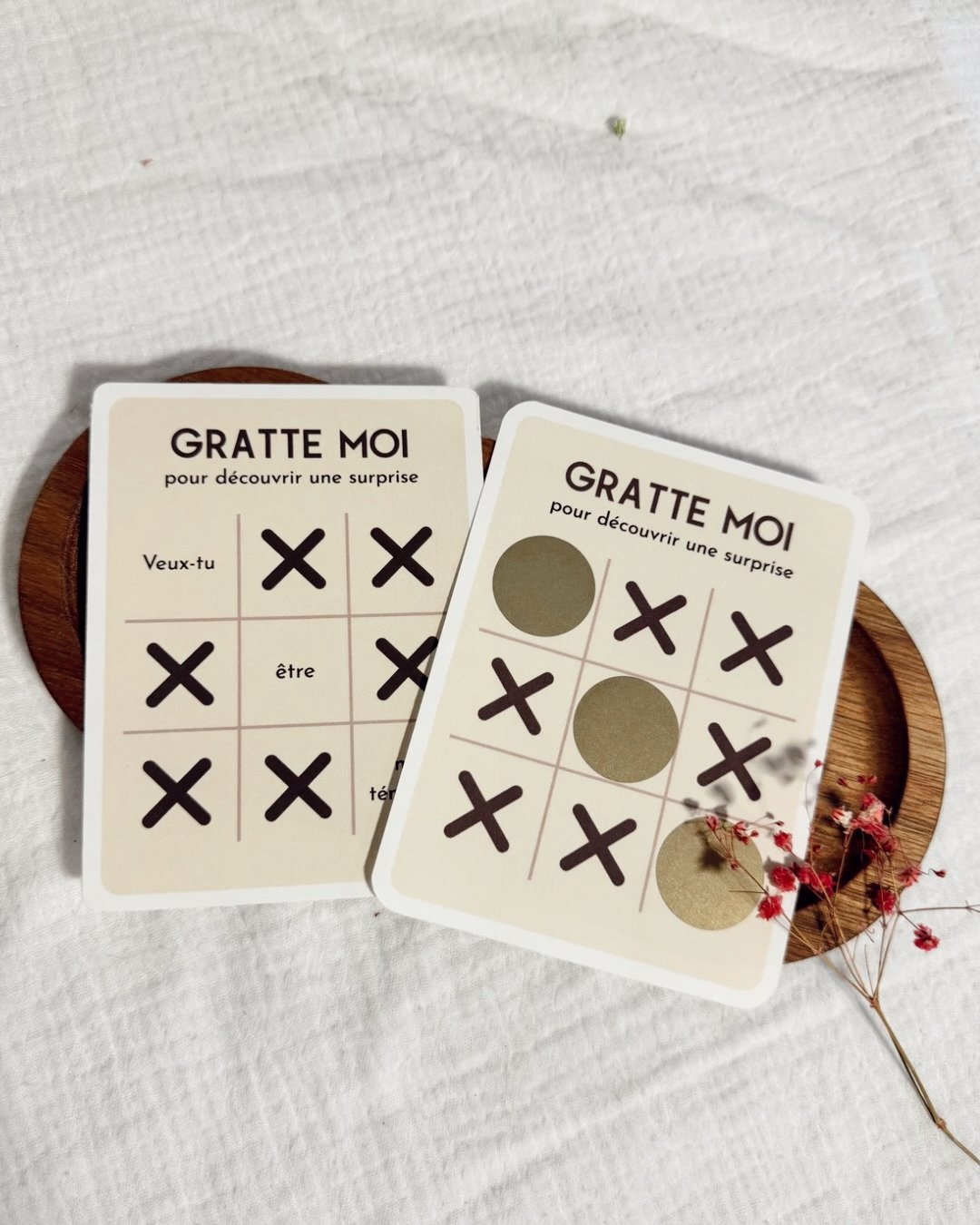 Sous la zone à gratter se cache un message tendre et symbolique, révélant avec émotion la grande nouvelle de votre union.