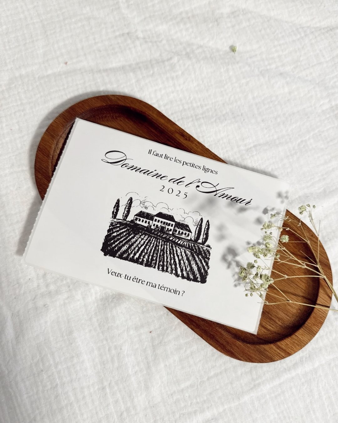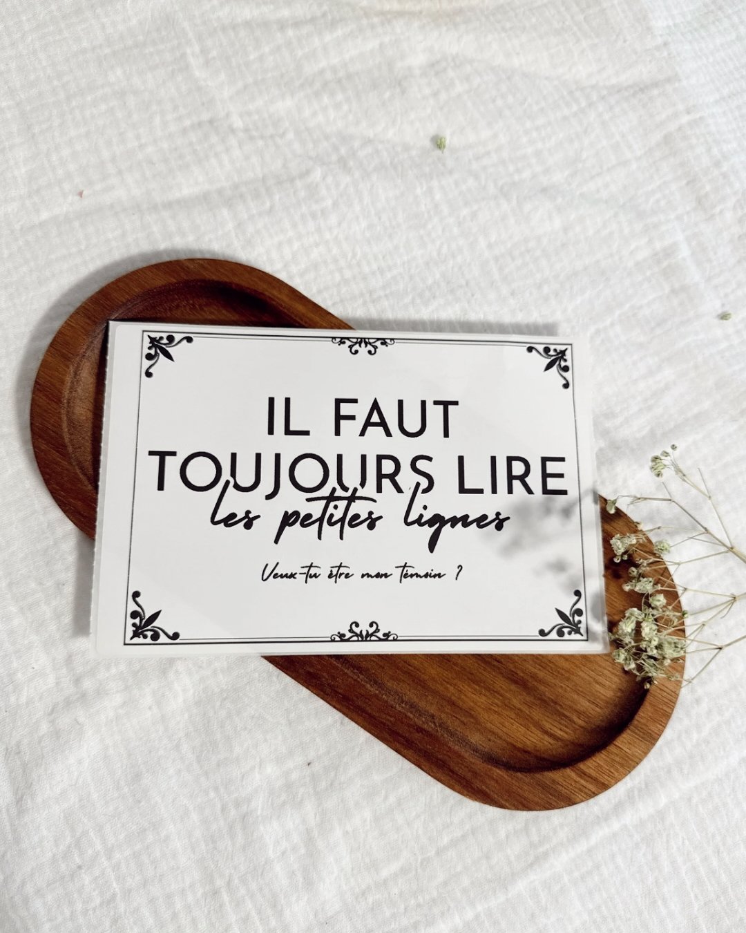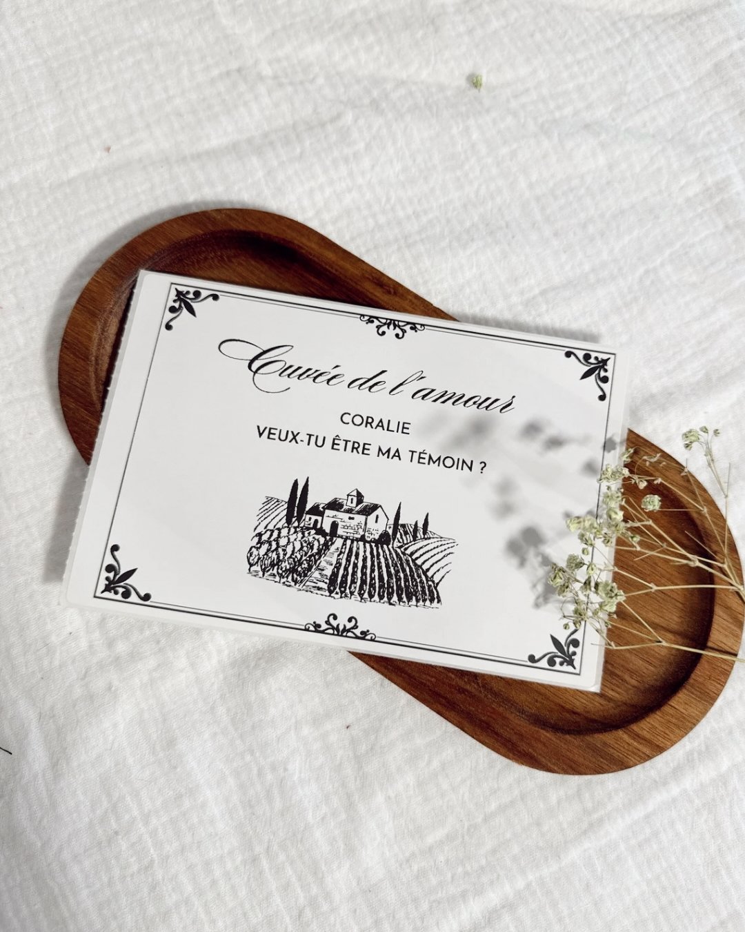 Chaque création est imprimée avec soin dans notre atelier, pour que votre demande soit aussi mémorable que le rôle que votre témoin s’apprête à jouer.