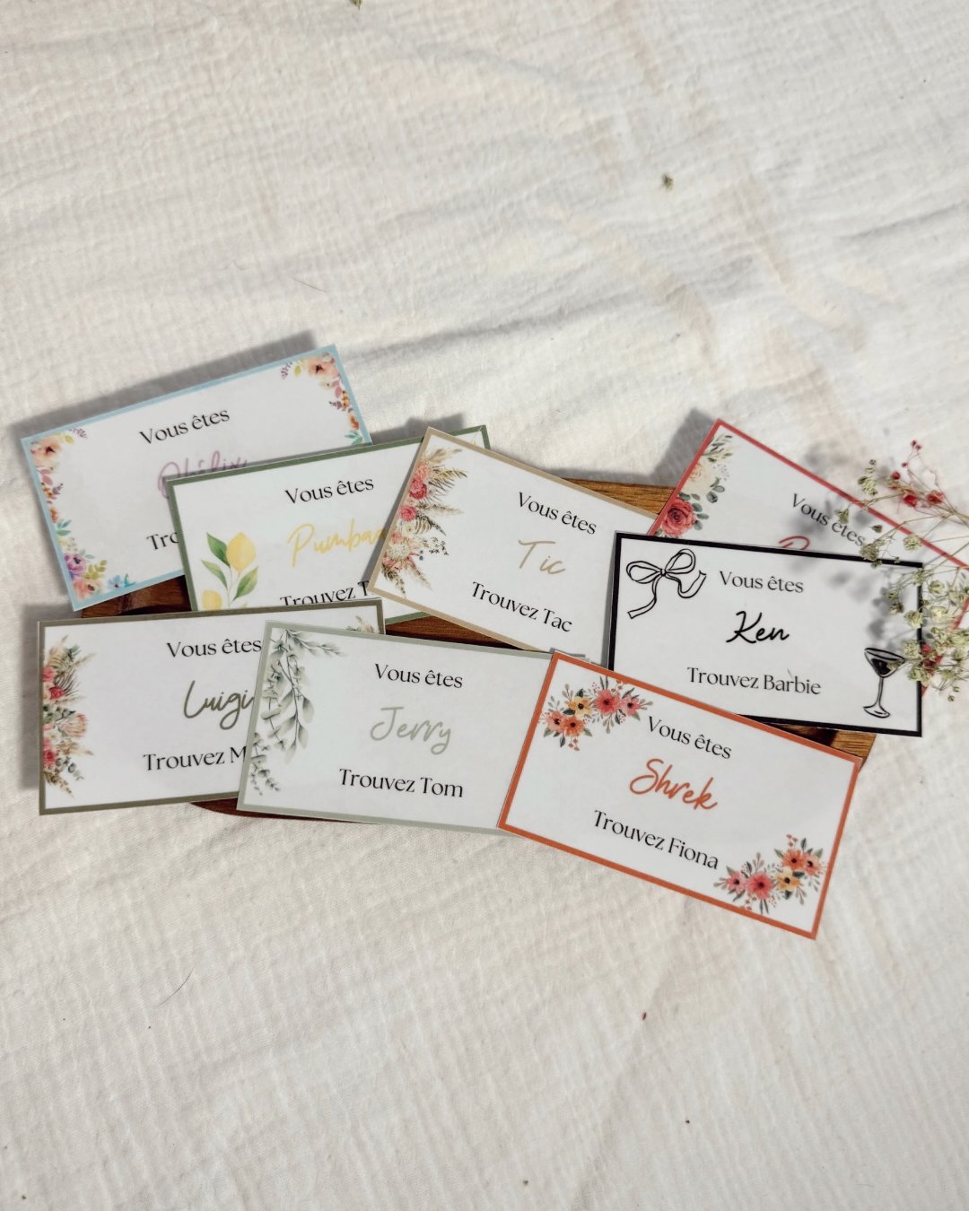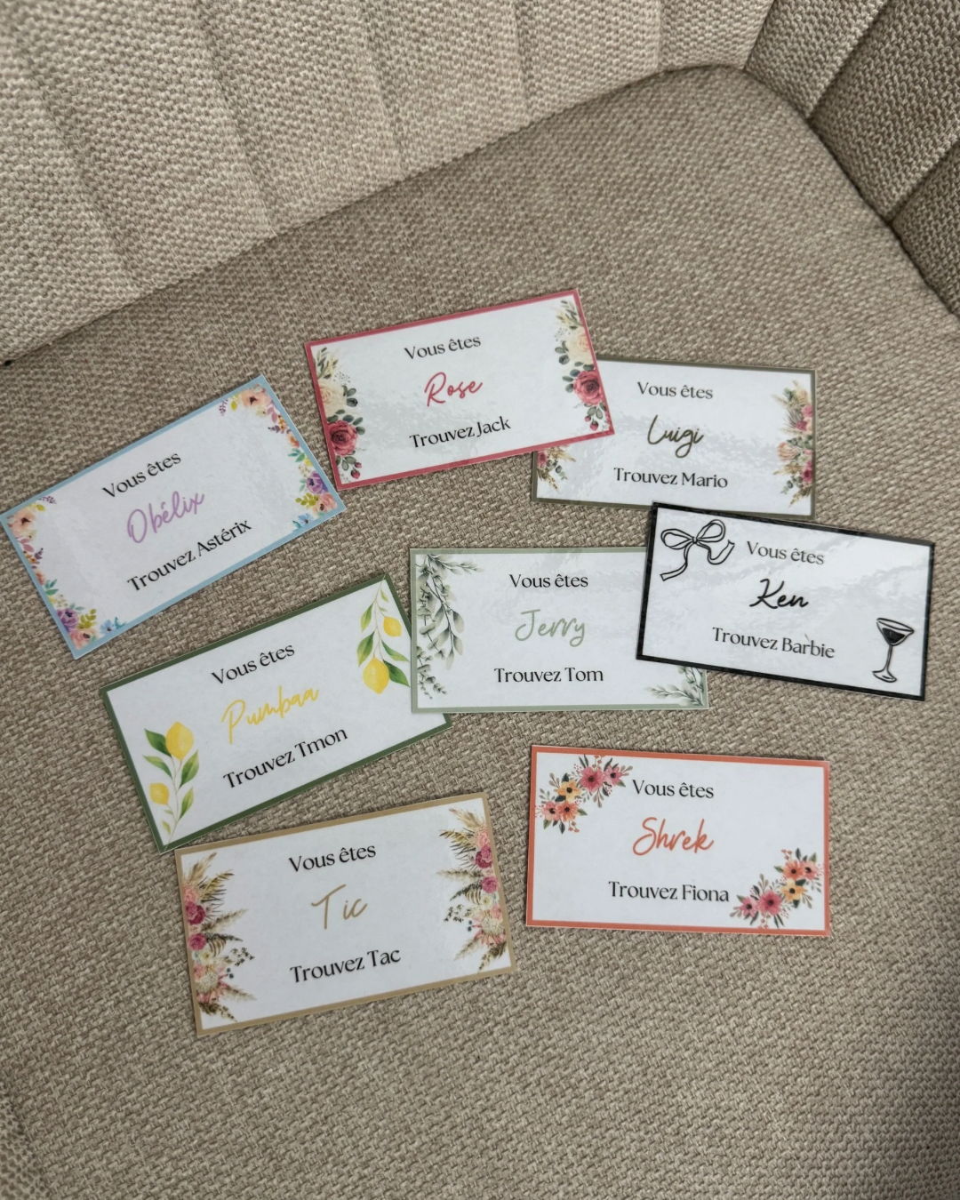 Ajoutez une touche de fun et de convivialité à votre mariage avec le jeu des binômes clé en main ! Parfait pour animer vos invités et créer des moments mémorables, ce jeu est entièrement personnalisé selon vos envies.