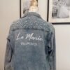 Offrez-vous une pièce unique pour célébrer votre grand jour : notre veste en jean brodée de perles blanches.
